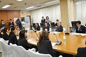 ナガサキ・ユース代表団第2期生は、メンバー決定後、核問題や原爆被害についての勉強会を重ね、ニューヨークの国連本部で開催される「2015年NPT(核不拡散条約)再検討会議第3回準備委員会」に向けて、準備を進めてきました。任命式では、調会長の開会挨拶の後、一人一人に任命状が授与されました。その後、田上市長、片峰学長、県知事代理の松川局長から、ナガサキ・ユース代表団への期待と励ましの言葉が送られました。任命式を終え、4月下旬にいよいよナガサキ・ユース代表団第2期生は、ニューヨークへ向けて出発します。